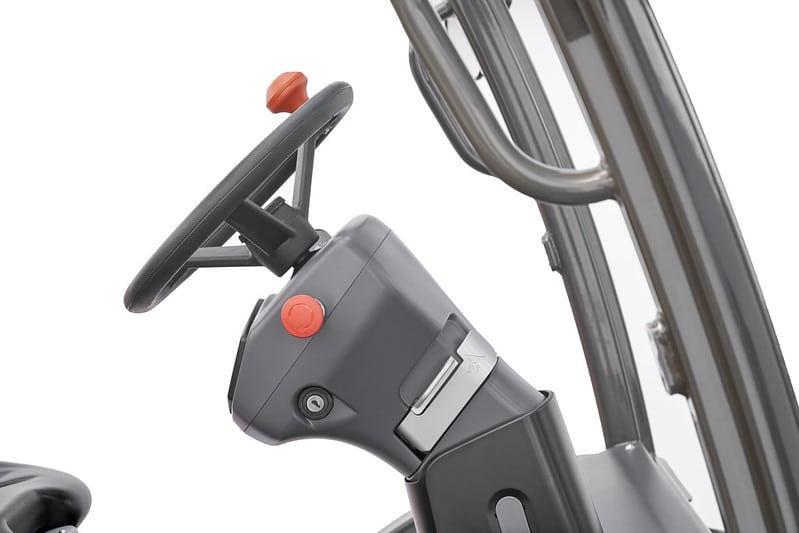 Seat belt with fasten sensor, Seat with operator’s presence sensor, LED rotating beacon, Acoustic warning for reverse gear, Emergency stop, Hill Holder – hill-start assist, Negative brake