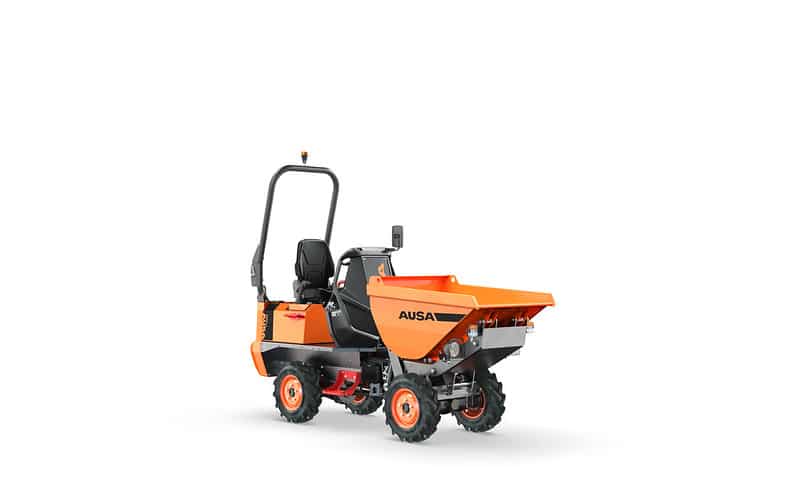 The D101AHA Compact dumper is AUSAโs smallest model. It features a high-tip skip with a 1,000-kg (2,200 lb) payload capacity. With its narrow width of just 100 cm (39 in), it can easily pass through standard buildings and residential doorways. This makes the D101AHA Compact the perfect dumper for indoor projects like renovations or small demolitions. Additionally, its permanent 4-wheel drive ensures it can handle the toughest terrains with ease.