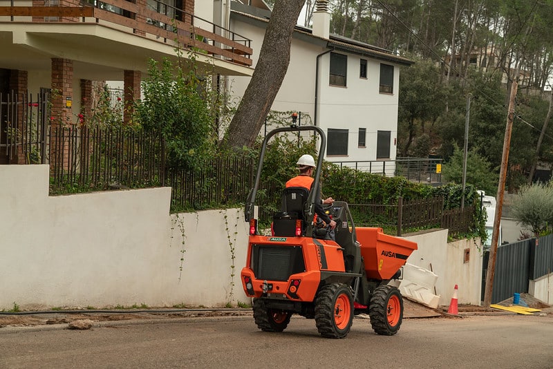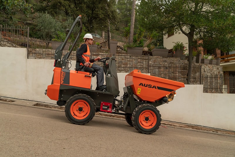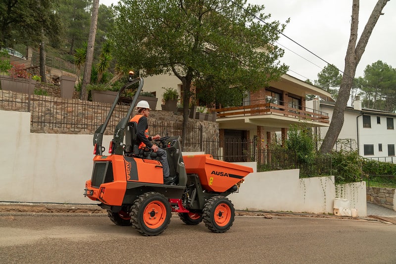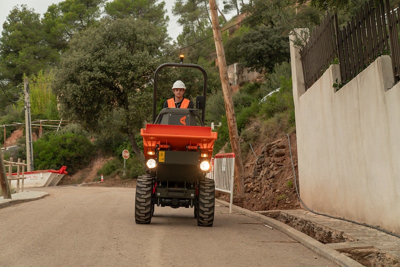 The D101AHA is a compact dumperโjust 108 cm (42 in) wideโwith a 1,000-kg (2,200 lb) payload capacity. Its high-tip skip allows for easy unloading into construction containers. Thanks to its compact dimensions, itโs the perfect vehicle for small urban projects and building renovations. The permanent 4-wheel drive ensures it can tackle even the toughest terrains.
