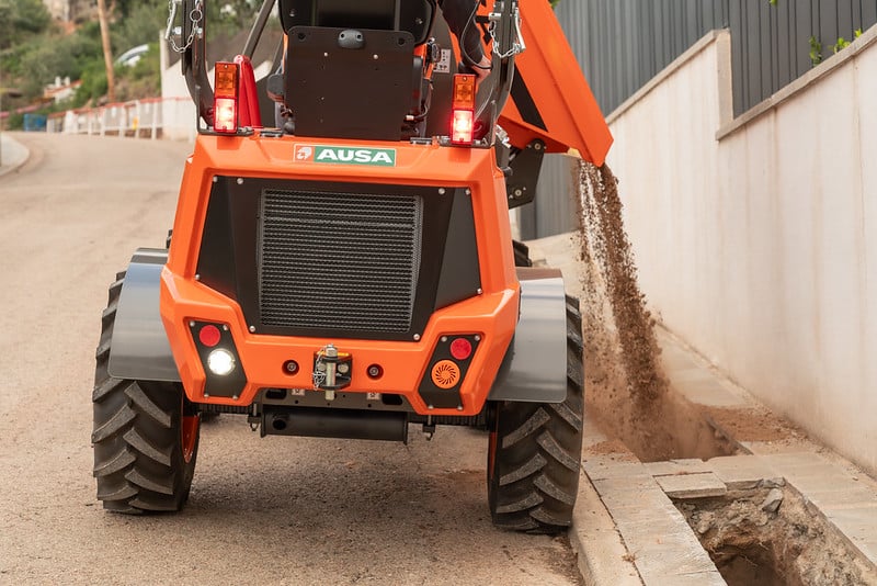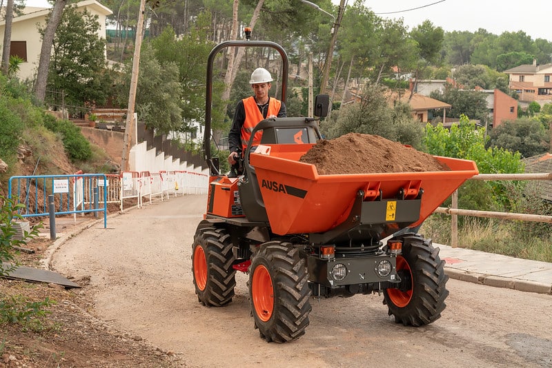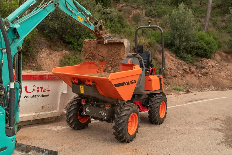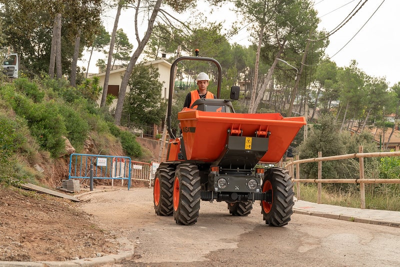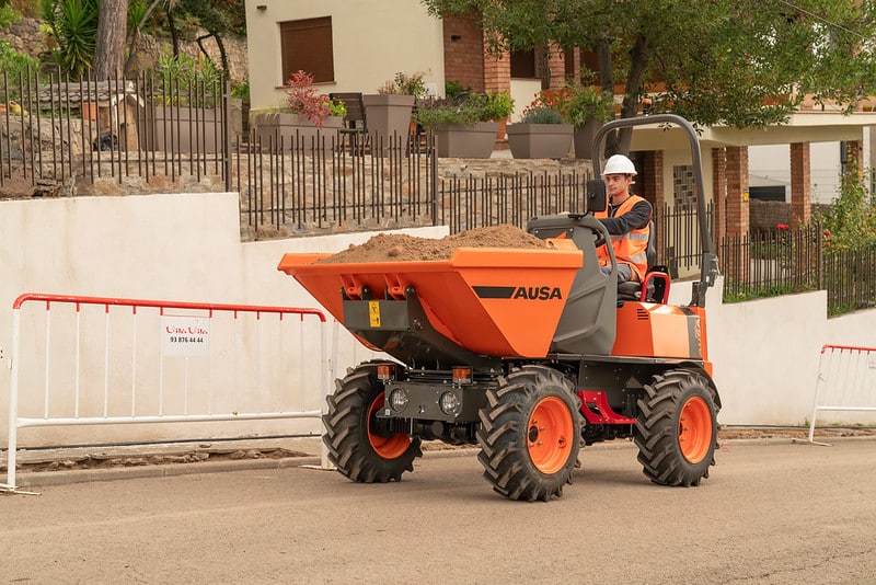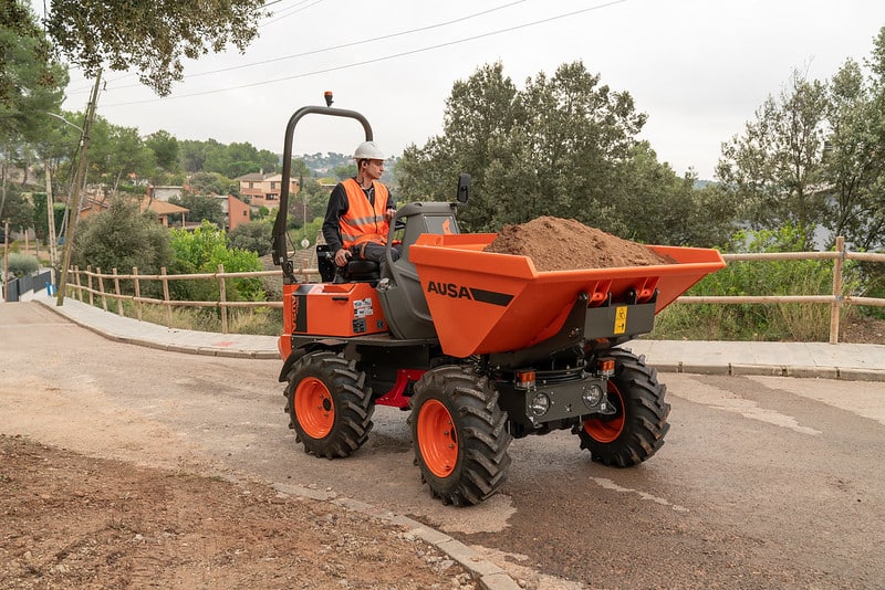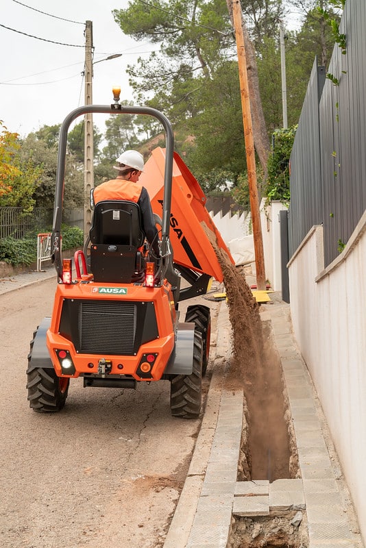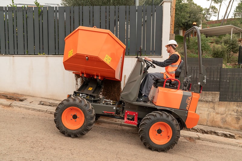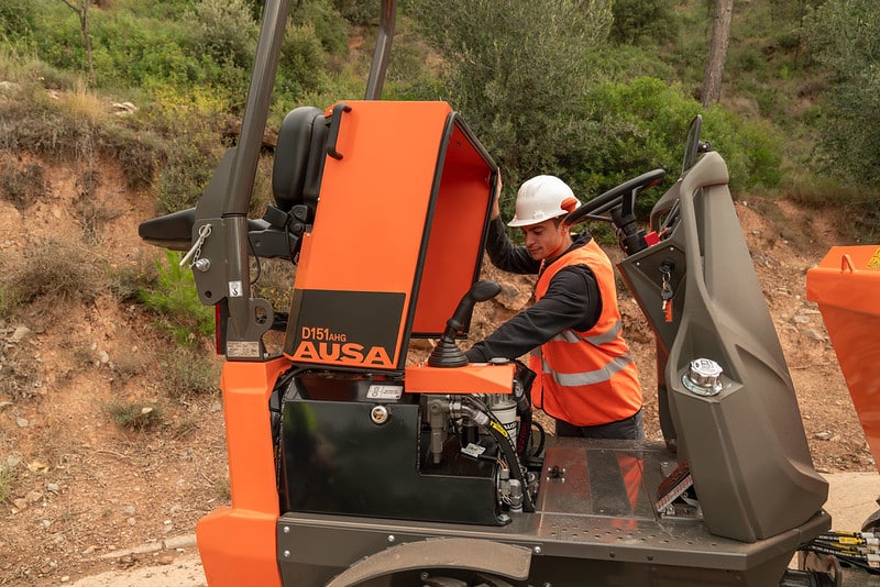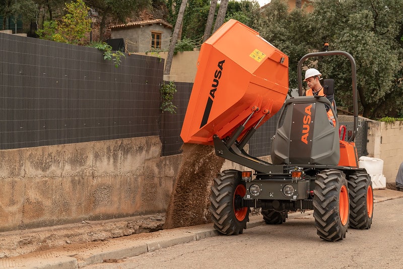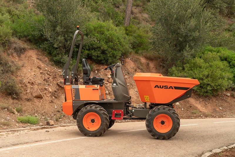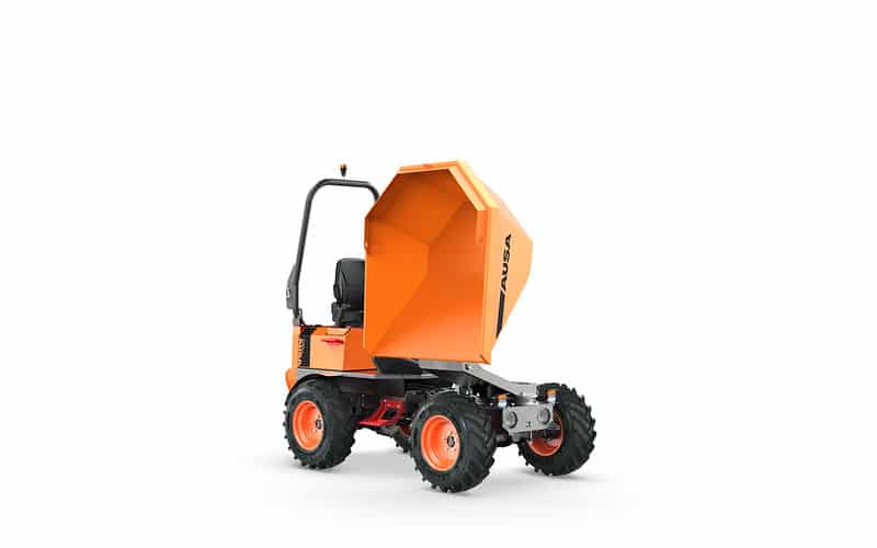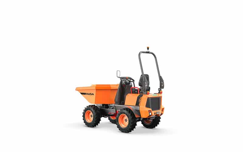 The D151AHG is a versatile dumper with a 1,500-kg (3,300 lb) payload capacity and a swivel skip, making it ideal for comfortably unloading materials into side ditches. Its compact size is perfect for small public works projects and areas with difficult access. Additionally, the permanent 4-wheel drive ensures it can handle even the toughest terrains.