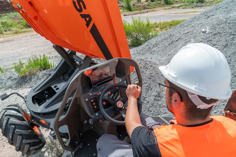 This dumper is equipped with numerous safety features that allow the operator to perform earthmoving work easily while minimizing risks.