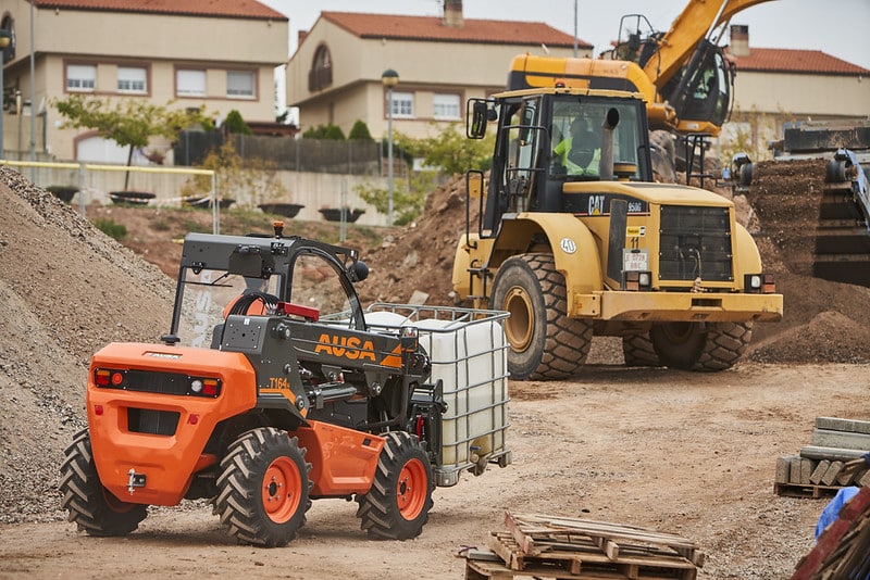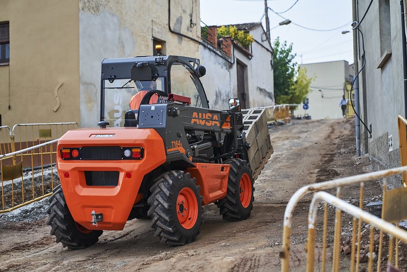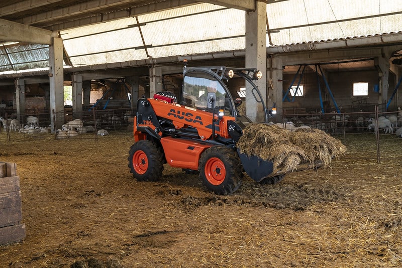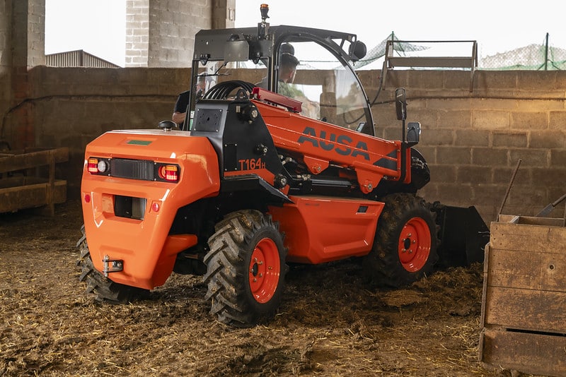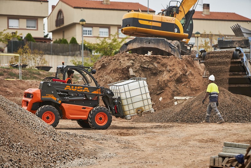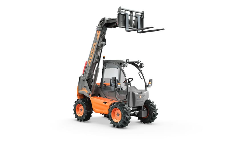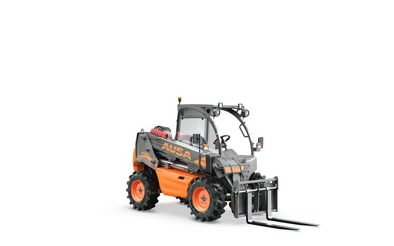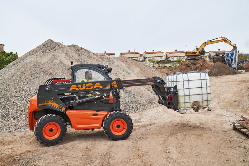 The T164H is capable of lifting a payload of up to 1,600 kg (3,530 lb) and has a maximum lift of 4 metres (13 ft). Thanks to its compact dimensions, the direction of its rear wheels and its excellent manoeuvrability, it is the telescopic handler with the best turning radius of its category, including forks. Its excellent off-road capability also means that it offers a grade-ability of 40%. In short, the T164H is the telescopic handler with the best quality-price ratio on the market.