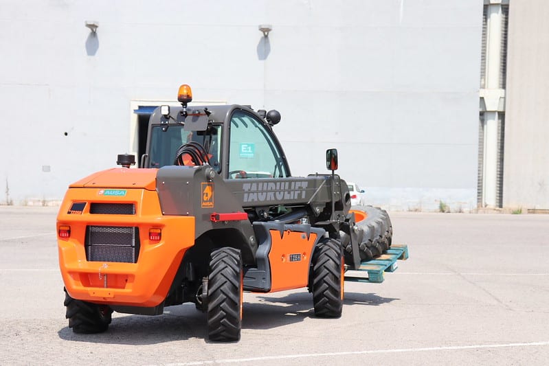 Digital display, Hydrostatic transmission, Limited-slip differential on the front axle, Front-wheel, four-wheel and crab steering modes, Inching pedal