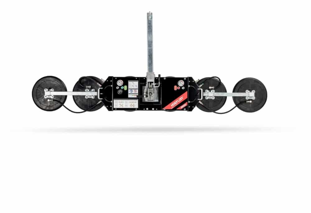 The Hoeflon S800 vacuum lifter is a premium quality multifunctional glass lifter. The angle adjustment on the Hoeflon lifting arm provides extra safety and convenience for glazing installation because the angle can be fixed in different positions. The overall width of the machine is very low, which means that work can also be carried out between the façade and scaffolding.